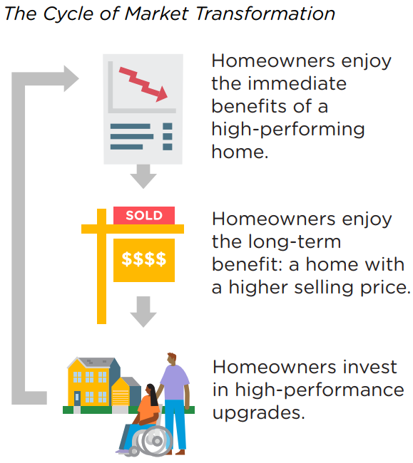 As these homes continue to sell for a higher price, it creates a cycle of market transformation where owners upgrade their homes not just for comfort and savings, but also because they can expect to capture the value of these improvements at the time of home sale.